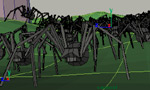 Behavioural particle motion was converted to paths using this tool. Spiders driven by an expression based walking system for legged motion were attached to these paths.