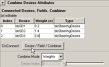- a bbCombineDesire node allows you to combine different steering desires (or