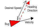- this desire causes the bug to head in the direction specified by 'Heading Direction' at 'Desired Speed'