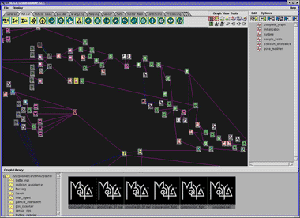Crowd control networks can easily be generated by simply plugging dependency nodes together. I developed various parts of the ALICE: nodes to control crowd dynamics (math, (fuzzy) logic, state machines, flow control, etc.), the integration of crowds with particle systems (for arrow impacts, dust kicks, blood splashes, etc.), data visualizer and a new interface which enables TD's to build, manage and debug crowd control graphs easily.